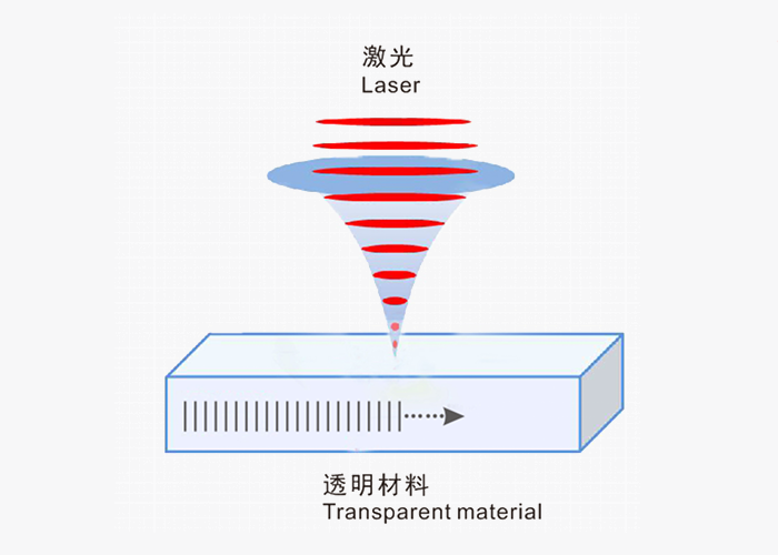 該技術即利用等離子體在材料內部的膨脹沖擊,對周邊形成應力傳導的效應來切割材料,是一種非常先進的皮秒激光“冷”加工技術。可切割各種透明脆性材料,如玻璃、藍寶石、硅、碳化硅等材料。